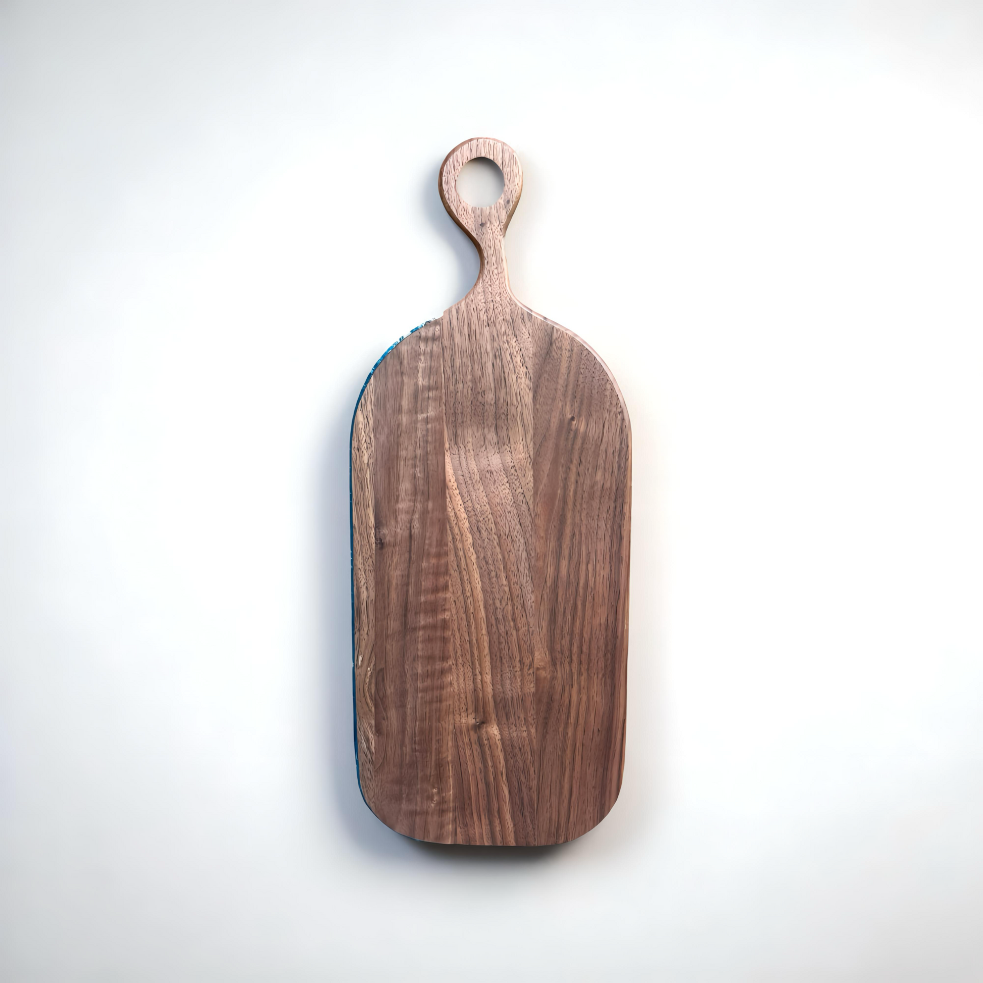 Handgemaakte walnoot serveerplank met epoxy oceaan effect.
